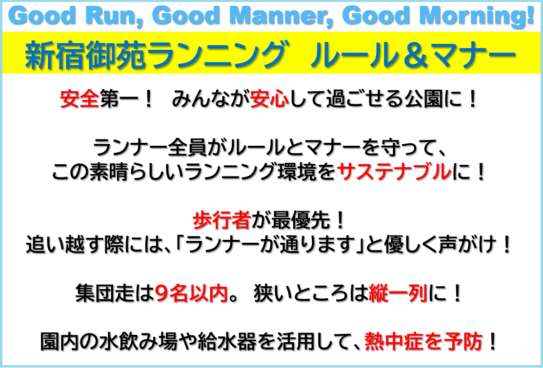 *歩行者が優先です。ランニングマナー・ルールを守ってください。