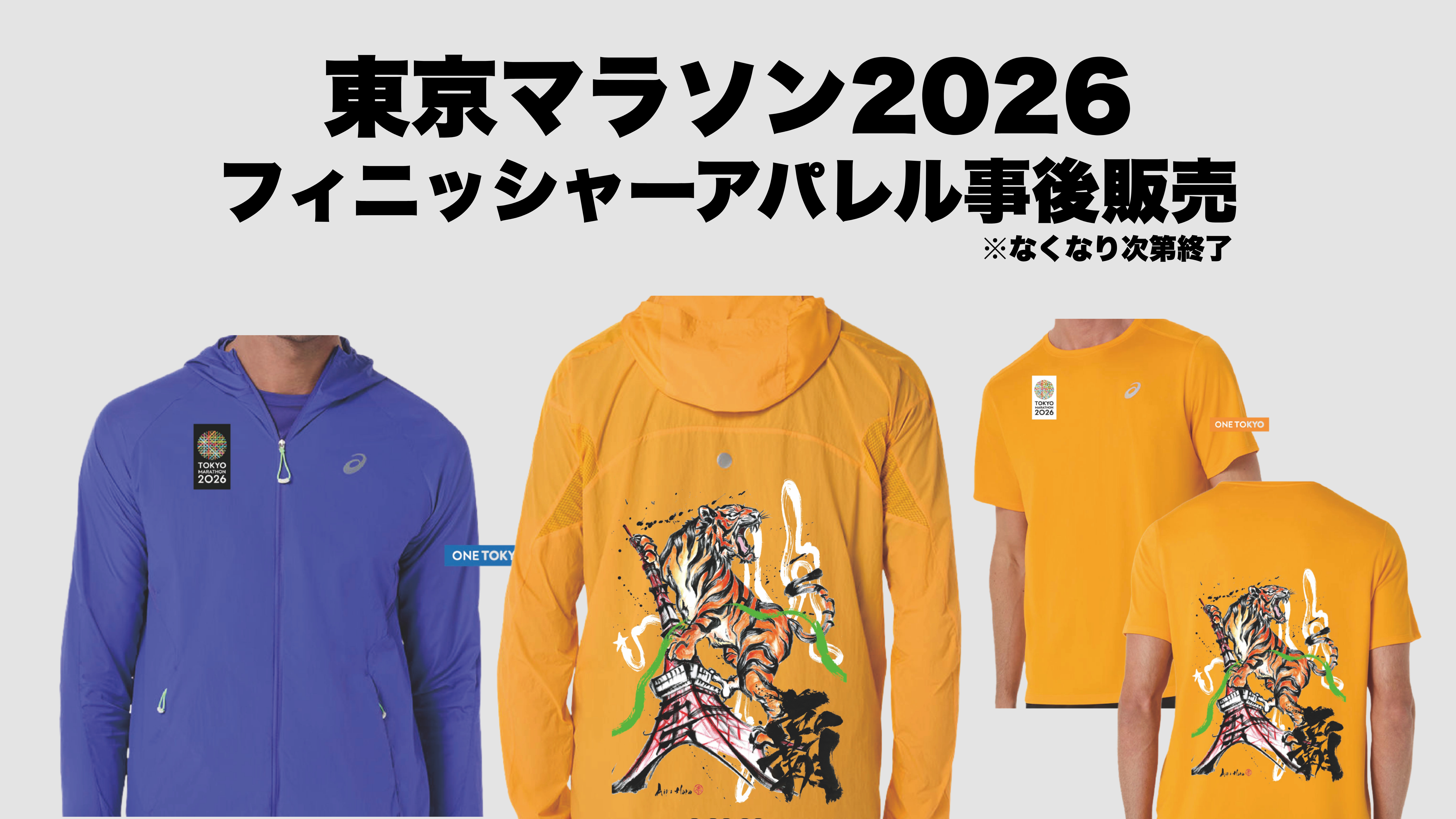 ONE TOKYOプレミアム会員様限定で東京マラソン2026フィニッシャーアパレルの事後販売が決定しました。